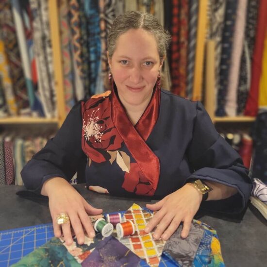 As the daughter of a mixed media artist and a costume designer for Opera Colorado, my earliest memories revolve around colors and textures and the interplay between them. I love the warmth of fabric and the richness of its varied textures. Having lived in Israel, Japan and China, I draw inspiration from multiple aesthetics to create connections between cultures and peoples. I learned to sew at age 4, and started winning awards for it by age 8. My work has been widely exhibited and published at major museums and quilt shows around the world, in: The National Quilt Museum, ArtPrize (Michigan), The Denver Art Museum, The Mizel Museum (Denver), The Photographic Gallery (Finland), The New York Times, Threads Magazine, Asian Fabrics Magazine, Air India in-flight magazine, The Vienna City Hall (Vienna), by invitation at the Pacific Int’l Quilt Festival (California), Road to California, the International Quilt Festival (Houston), and in galleries and exhibits around the world. I have been privileged to teach sewing and textile arts to groups all around the world, including for Burda Patterns, Jo-Ann Fabrics, Colorado Free University, Kona Bay Fabrics, Kendall College of Art and Design (Grand Rapids, MI), and many more. I currently serve on the Conference Committee Board for H+H Chicago, and will be teaching 3 classes at Fiber+Fabric Craft Festival.