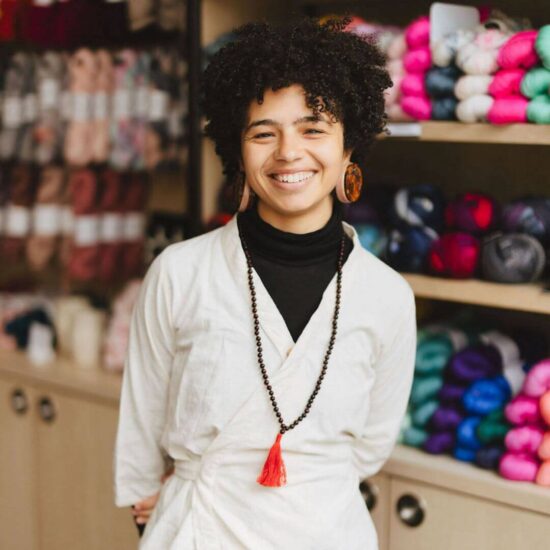 Lauren McElroy is an artist and meditation teacher, blending mediums to help people find their own creativity. They have been published in interweave knits, vogue knitting, making, spin off, Ply, knitstrips, and are a season 7 Knitstar.