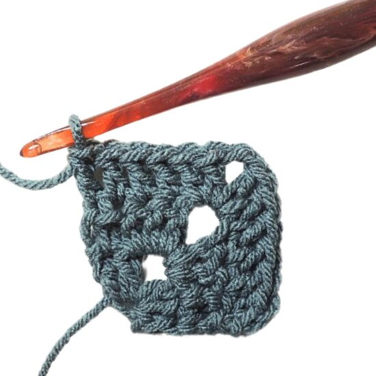 Rnd 1: Attach yarn to ch-2 sp of Row 6, ch 3, [sc 29 evenly along side of square, ch 2] 3 times, sc 29 evenly alone side of square, sl st in beginning ch-3 sp to join. [29 sc on each side]