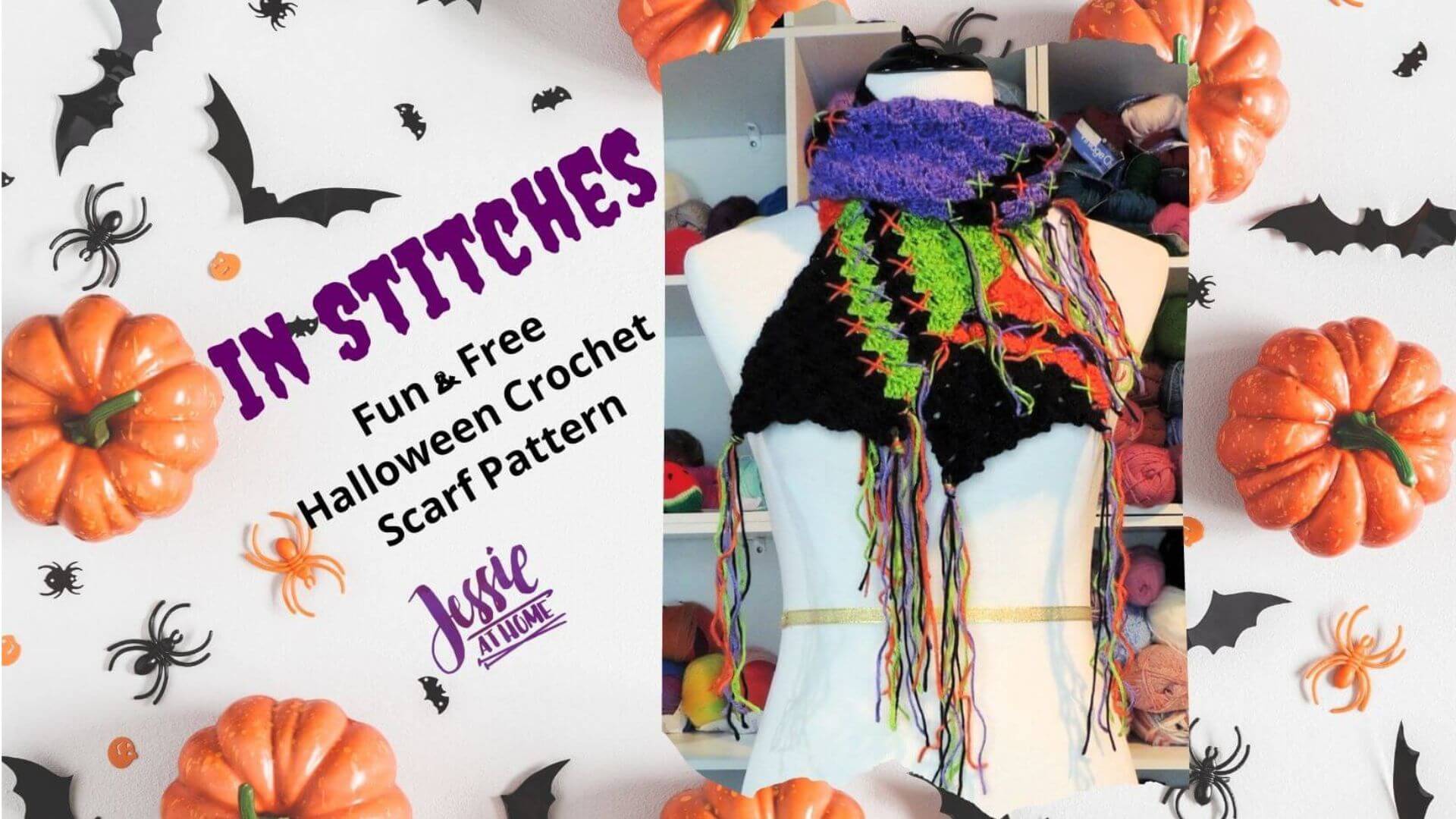 I don’t know about you, but when I hand out candy, I like to at least be dressed with some Halloween spirit. I may not always get my full costume on, but I know this year my In Stitches Scarf will help me get my scare on. This free crochet pattern will help you get your scare on too.